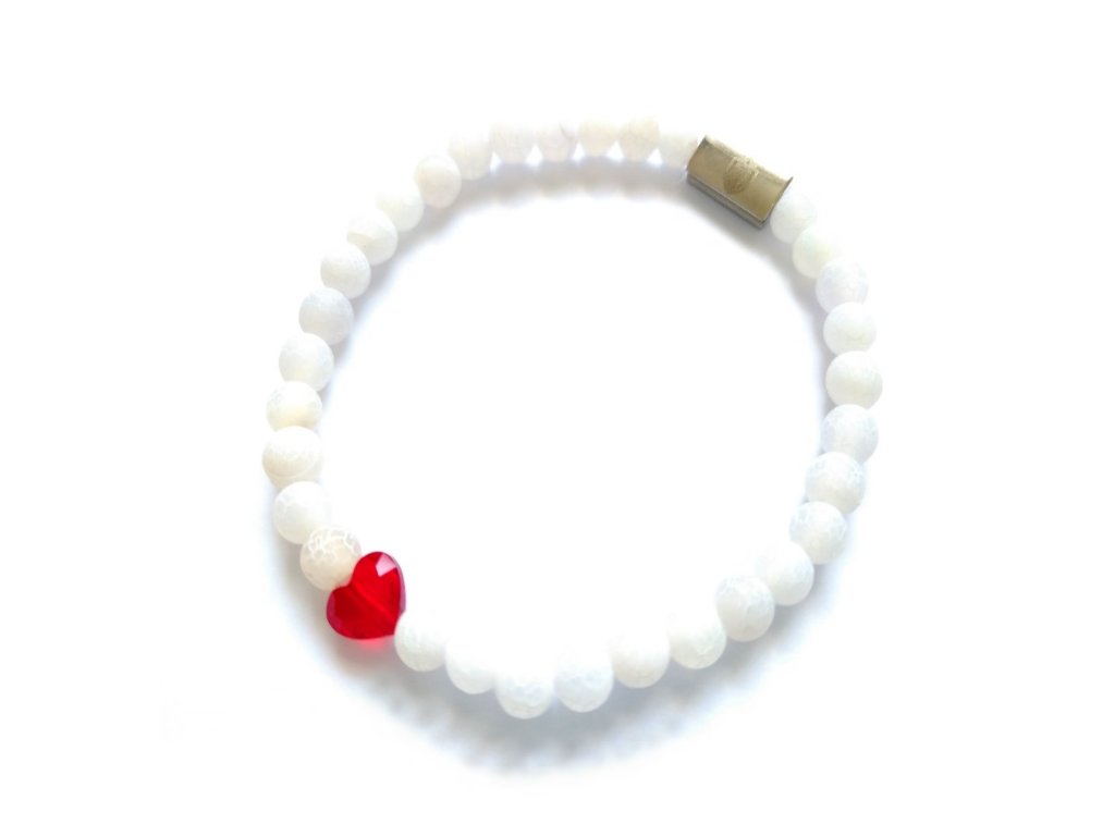 Minerální náramek v rafinované jednoduchosti, to je luxusní kombinace bílého praskaného Achátu a srdce z edice Swarovski® Elements Light Siam. Perfektní do každé společnosti, ve které zazáříte. Je to náramek romantiky a proto se hodí i jako dárek pro Vaši partnerku.